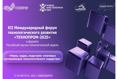 XII Международный форум «Технопром–2025» пройдет в МВК «Новосибирск Экспоцентр» с 27 по 29 августа и продолжит свою работу на площадках города 30 августа.
