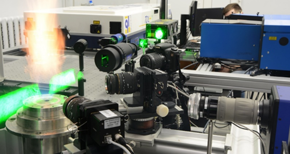 - Создание мезомасштабных экспериментальных установок и испытательных стендов для выполнения работ по малоэмиссионным современным экологичным камерам сгорания, моделирующих реальные условия в камерах сгорания газовых турбин и оснащенных современными диагностическими измерительными системами мирового уровня.